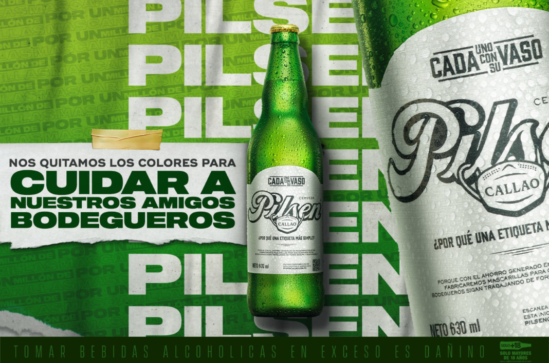 Pilsen Callao demuestra que la amistad es dejarlo todo por los verdaderos amigos, y es así como se despide, temporalmente, de los colores de sus etiquetas para ayudar a sus socios bodegueros en estos tiempos difíciles, pero manteniendo el mismo sabor de siempre. Durante los próximos meses dejarán de imprimir las etiquetas de su presentación más representativa (630ml) en color, dejándolas en blanco y negro, y usarán los recursos destinados a fabricar más de 1 millón de mascarillas que repartirán a casi 120 mil bodegas a nivel nacional para que sus patas bodegueros sigan trabajando de manera segura y responsable.